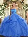 Beauteous Strapless Sleeveless Sweet 16 Dresses Floor Length Ruffles Blue Tulle