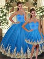 Beauteous Three Pieces Ball Gown Prom Dress Baby Blue Sweetheart Tulle Sleeveless Floor Length Lace Up
