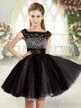 Beauteous Tulle Square Sleeveless Zipper Beading Prom Party Dress in Black