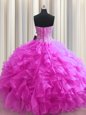 Home >  Quinceanera Dresses >  Custom Made Quinceanera Dresses > Beauteous Visible Boning Fuchsia Ball Gowns Sweetheart Sleeveless Organza Floor Length Lace Up Beading and Ruffles Sweet 16 Quinceanera Dress