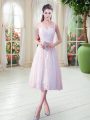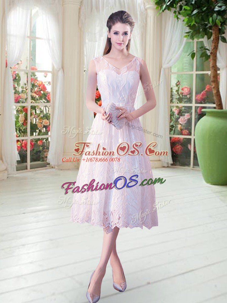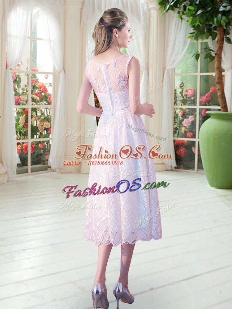 Beauteous White Empire Lace Prom Dresses Zipper Sleeveless Tea Length
