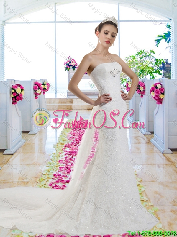Beautiful 2016 Mermaid Laced Wedding Dresses with Watteau Train