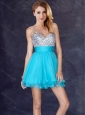 Beautiful A Line V Neck Sequined Aqua Blue Short Bridesmaid Dress