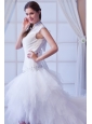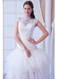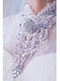 Beautiful A-line High-neck Court Train Tulle Beading Wedding Dress