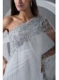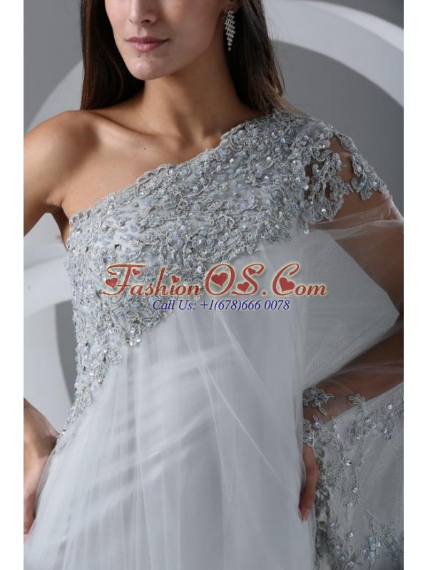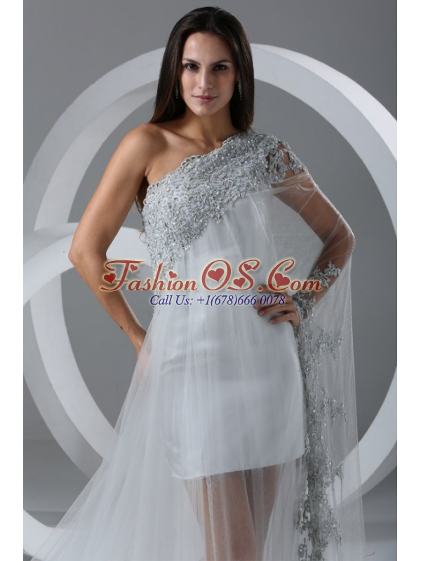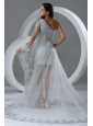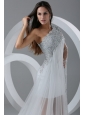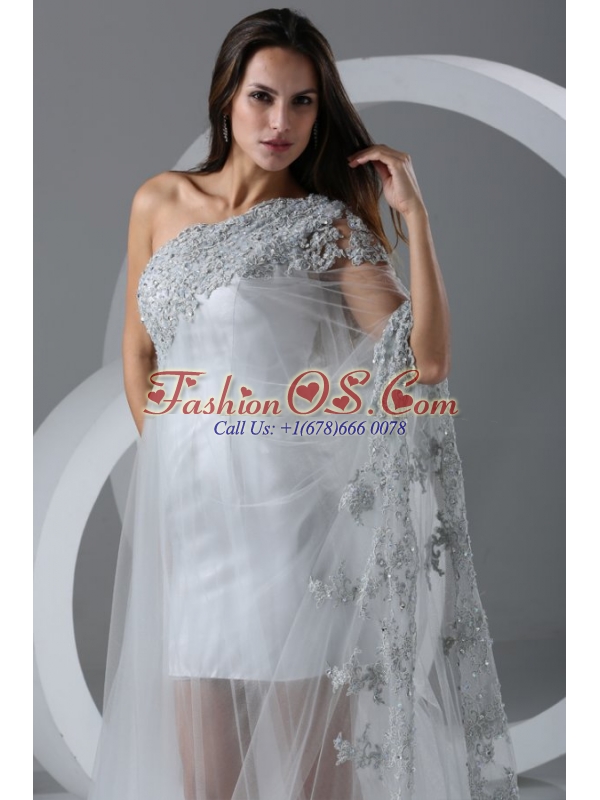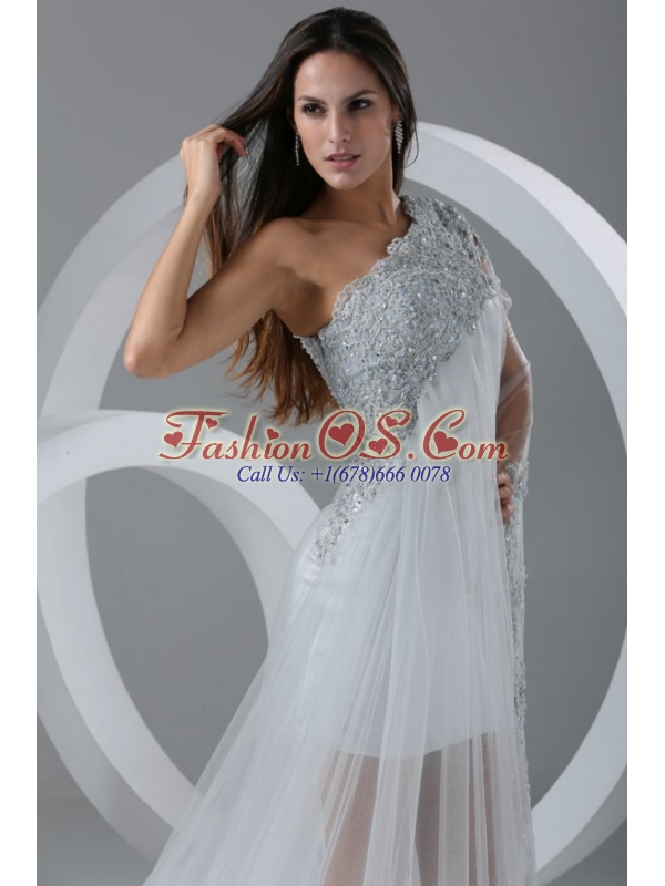Beautiful A-line One Shoulder Chapel Train Wedding Dress with Side Zipper