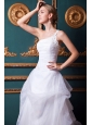 Home >  Wedding Dresses >  Low Cost Wedding Dresses > Beautiful A-line One Shoulder Court Train Organza Appliques Wedding Dress