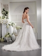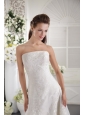 Beautiful A-Line / Princess Strapless Court Train Embroidery Organza Wedding Dress