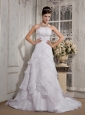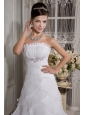 Beautiful A-Line / Princess Strapless Court Train Organza Beading Wedding Dress