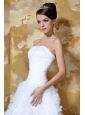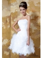 Beautiful A-line / Princess Strapless Knee-length Satin and Tulle Wedding Dress