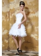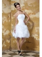 Here's a unique take on traditional wedding gowns – mini dresses. This one features a pretty strapless bodice with a wrapped texture. The underlayer of the skirt is made of many layers of great tulle fabric that create lots of fullness in the design, and it also will add to its beauty and lovely shape. Such a modern and fashionable look for any bride.The zipper up closure is the perfect finishing touch for this lovely bridal design.