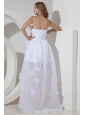 Everyone will watch you with wondering in this exquisite bridal dress! They are fashionable comfortable and look great on. It features a gathered strapless bodice. The waistband is embellished with a big gorgeous flower that creates a lovely effect. The light and airy skirt is asymmetrical featuring a knee-length hem in the front and a longer hem in the back, on which numerous flowers that boasts the back amazingly. So versatile and so pretty – use it as a base to create a look all your own!
