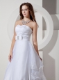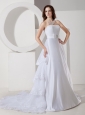Beautiful A-line / Princess Strapless Wedding Dress Satin and Organza Embroidery Court Train