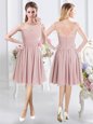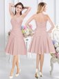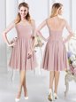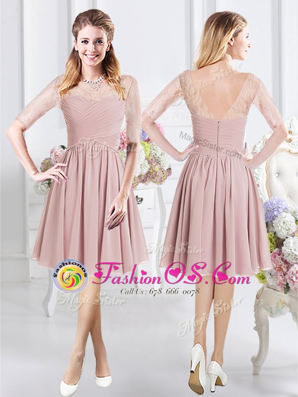 Beautiful A-line Quinceanera Court of Honor Dress Pink Scoop Chiffon Half Sleeves Knee Length Zipper