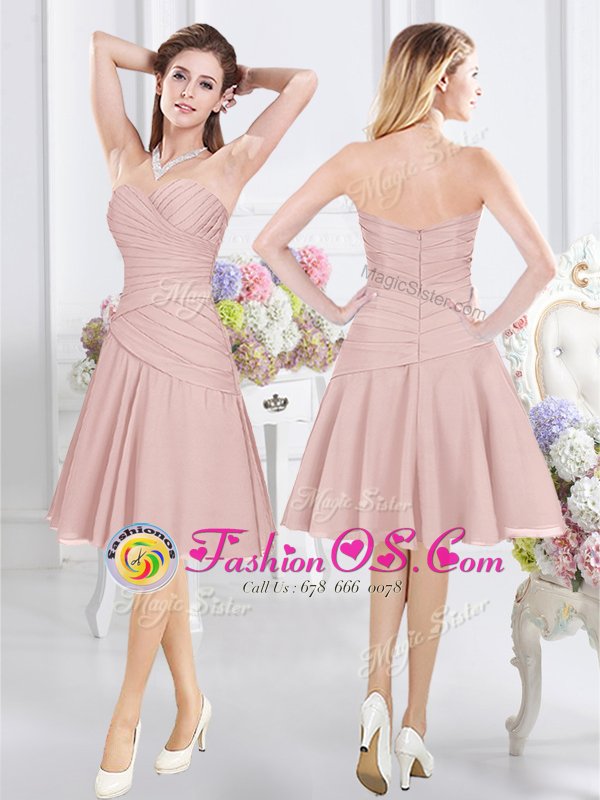 Home >  Special Occasion Dresses >  Cheap Dama Dresses > Beautiful A-line Quinceanera Court of Honor Dress Pink Scoop Chiffon Half Sleeves Knee Length Zipper