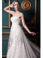 Beautiful A-line Strapless Cathedral Train Tulle Beading Wedding Dress