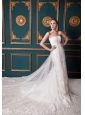 This white wedding dress will make your wedding the unique and leave a longlasting wonderful memory. The fitted bodice is adorned with a square neckline and exquisite embroidery on the ruched bust. The full length skirt is envoloped by a see-through lace fabric which extends to form a beautiful chapel train in the back. What are you looking for? Bring it home with no hesitation!