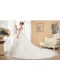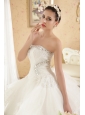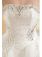 Home >  Wedding Dresses >  Ball Gown Wedding Dresses > Beautiful A-line Strapless Chapel Tian Satin and Organza Appliques With Beading Wedding Dress