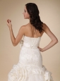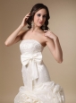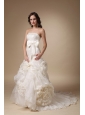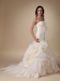 Beautiful A-line Strapless Chapel Train Satin and Organza Appliques and Hand Made Flowers Wedding Dress