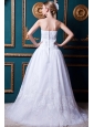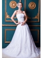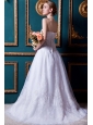 Beautiful A-line Strapless Court Train Organza Lace Wedding Dress