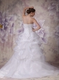 Beautiful A-line Strapless Wedding Dress Organza Appliques Court Train