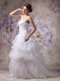 Home >  Wedding Dresses >  Beautiful Wedding Dresses > Beautiful A-line Strapless Wedding Dress Organza Appliques Court Train