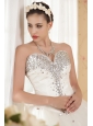 You will be the most beautiful bride in the world in this amazing white wedding dress! This creation is accented with a modified sweetheart and overflowed with dazzling beading, just like the firework shot into the sky. The A-line skirt is scattered with beading and overlayed with a sheer tulle, which beautify the dress. The back has the trim of the corset style closure and lovely bowknot assuming a fly butterfly. How wonderful!