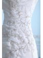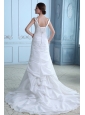 Do you want to be different from others on your day? This beautiful white wedding dress with special straps will help you become the shining star. The v-neck design with delicate appliques shows off your sexy and your slender body. The flowing A-line skirt with a train on the back gives you a style of grace. The sexy open back with half lace up and half zipper up finishes the look.