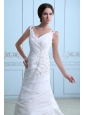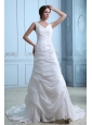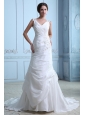 Home >  Wedding Dresses >  Beautiful Wedding Dresses > Beautiful A-line V-neck Ruch and Appliques Wedding Dress Court Train Taffeta