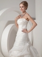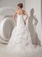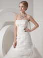 Home >  Wedding Dresses >  Elegant Wedding Dresses > Beautiful A-line Wedding Dress Strapless Organza and Satin Appliques Chapel Train