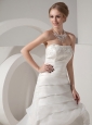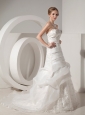 Beautiful A-line Wedding Dress Strapless Organza and Satin Appliques Chapel Train