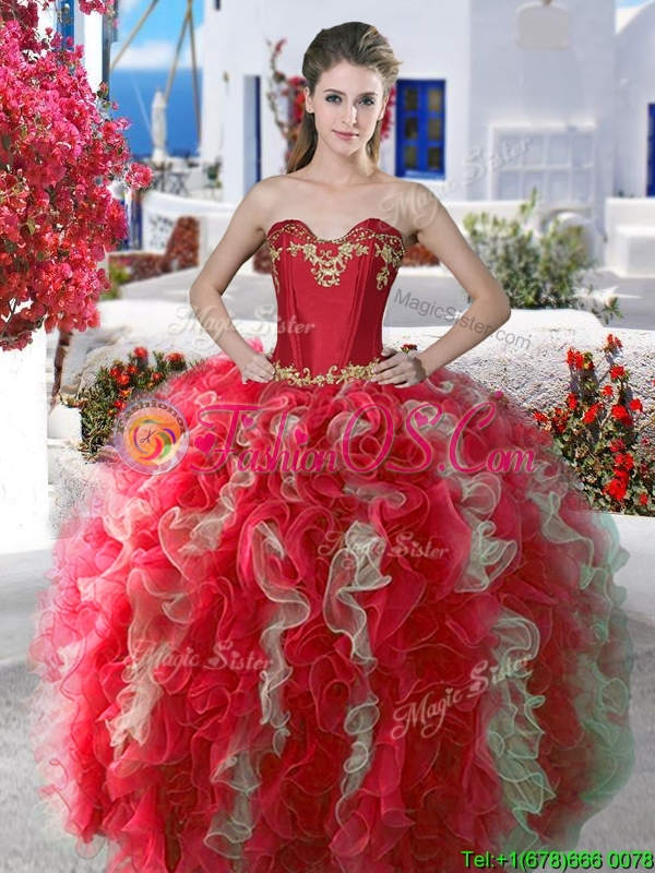 Beautiful Applique and Ruffled Detachable Quinceanera Dresses in Organza