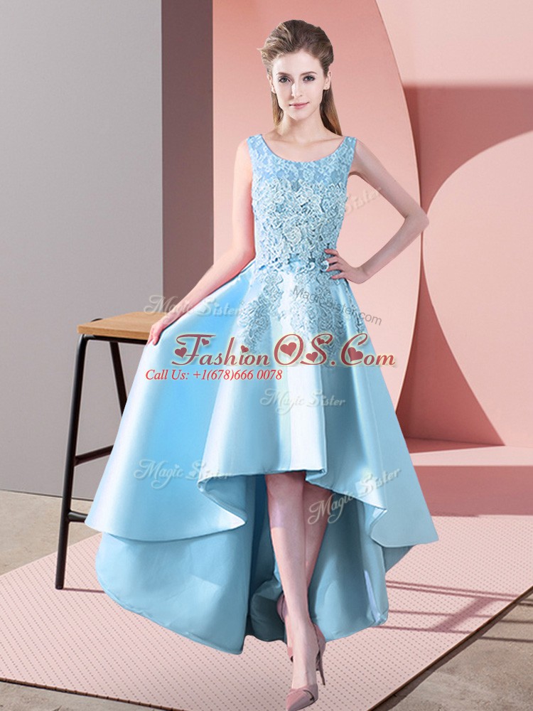 Beautiful Aqua Blue A-line Lace Bridesmaid Dresses Zipper Satin Sleeveless High Low
