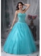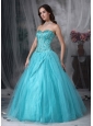 Beautiful Aqua Blue A-line Sweetheart Quinceanera Dress Tulle Beading Floor-length