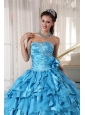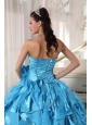 Home >  Quinceanera Dresses >  Perfect Quinceanera Dresses > Beautiful Aqua Blue Quinceanera Dress Sweetheart Floor-length Organza Beading Ball Gown