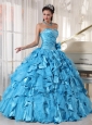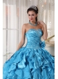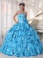 Beautiful Aqua Blue Quinceanera Dress Sweetheart Floor-length Organza Beading Ball Gown