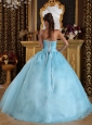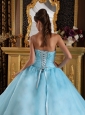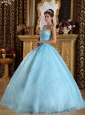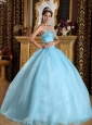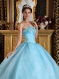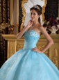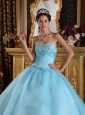 Beautiful Aqua Blue Quinceanera Dress Sweetheart Organza Beading Ball Gown