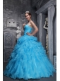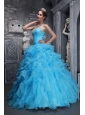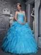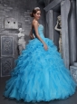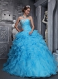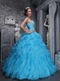 Home >  Quinceanera Dresses >  15 Quinceanera Dresses > Beautiful Aqua Blue Quinceanera Dress Sweetheart Taffeta and Organza Beading and Appliques Ball Gown