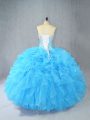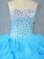 Beautiful Aqua Blue Sleeveless Organza Lace Up Quince Ball Gowns for Sweet 16 and Quinceanera