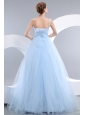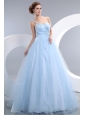 Beautiful Baby Blue A-line One Shoulder Prom / Evening Dress Tulle Appliques Floor-length