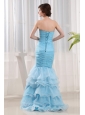 Beautiful Baby Blue Beaded Decorate and Ruch Ruffled Layeres Sweetheart Prom Dress For Party