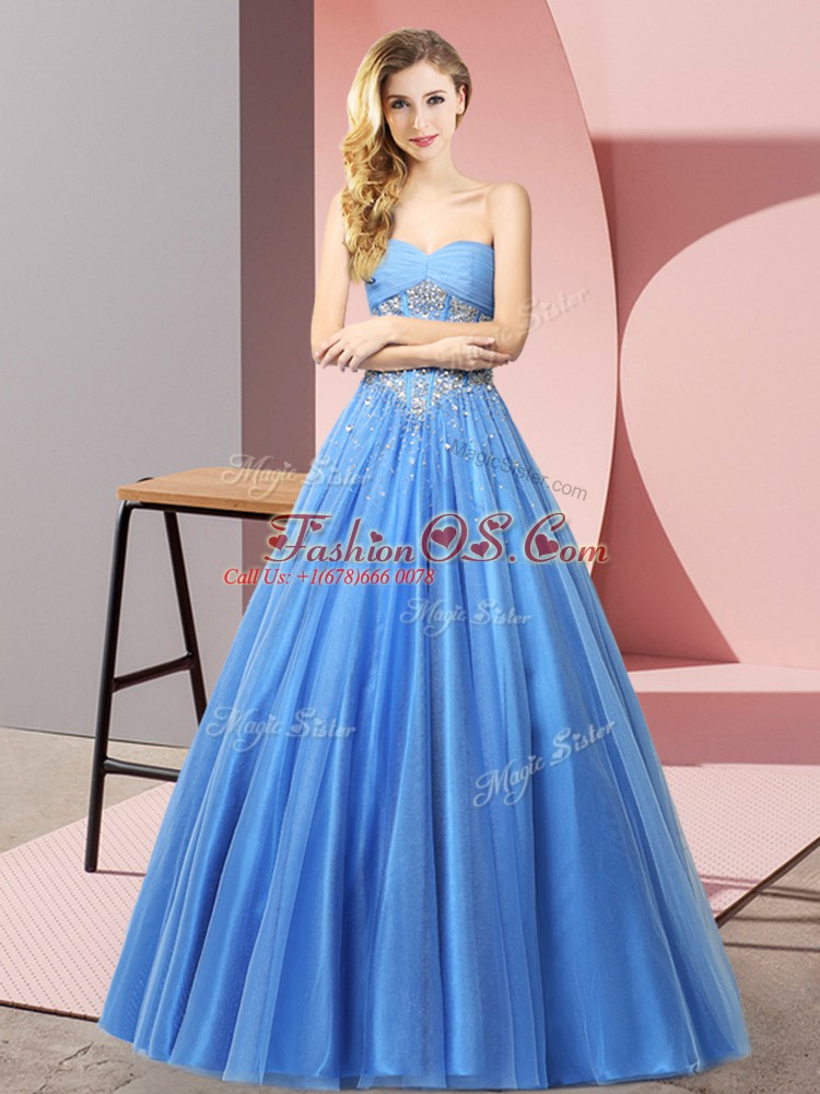 Beautiful Baby Blue Sweetheart Lace Up Beading Prom Dress Sleeveless