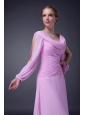 Beautiful Baby Pink Empire V-neck Mother Of The Bride Dress Chiffon Ruch Floor-length