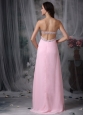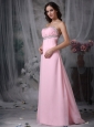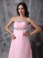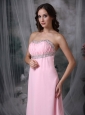 Beautiful Baby Pink Strapless Prom Dress Chiffon Beading