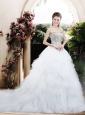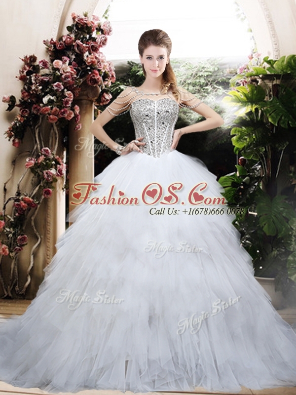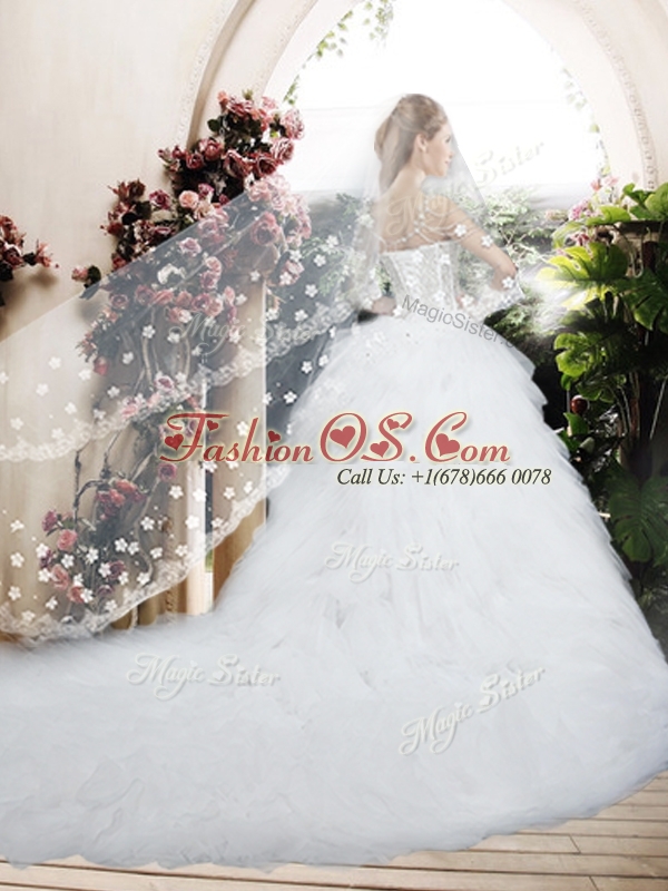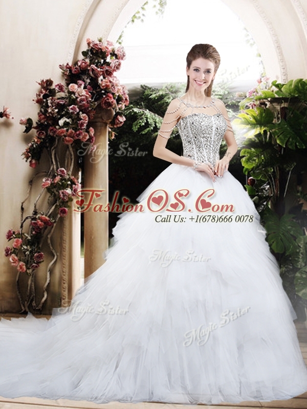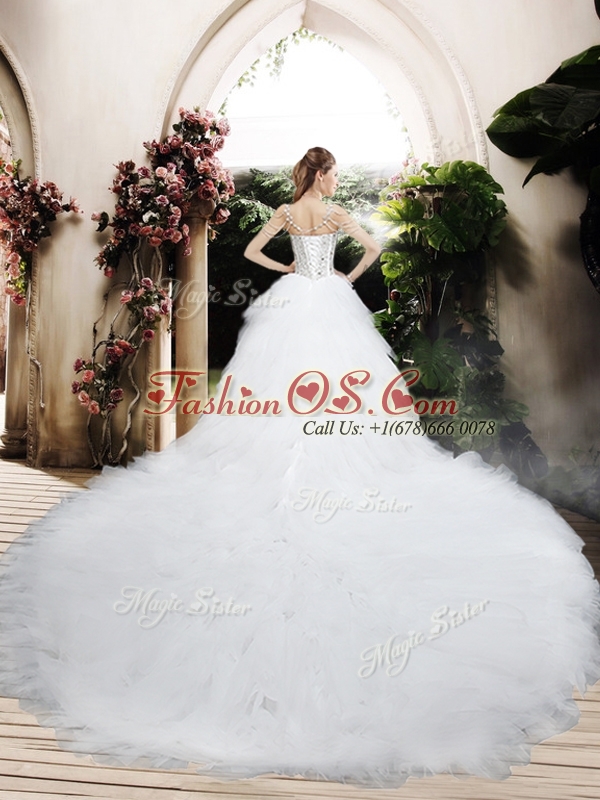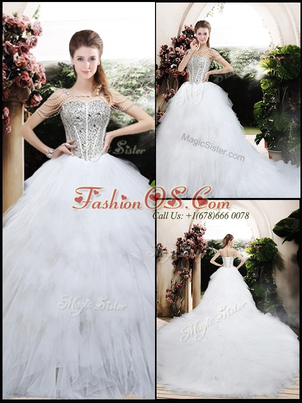 Beautiful Ball Gown Chapel Train Wedding Dresses with Beading and Ruffles