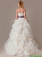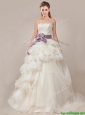 Beautiful Ball Gown Strapless Sophisticated Ruffled and Sashed Wedding Dresses with Brush Train