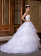 Beautiful Ball Gown Strapless Wedding Dress Chapel Train Taffeta and Organza Beading