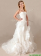 Beautiful Ball Gown Sweetheart Ruched and Rolling Flowers Wedding Dresses with Brush Train