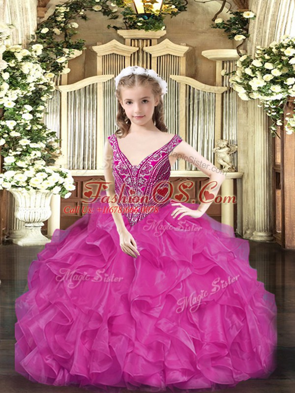 Home >  Special Occasion Dresses >  Pretty Little Girl Pageant Dresses > Beautiful Ball Gowns Little Girls Pageant Dress Wholesale Fuchsia V-neck Organza Sleeveless Floor Length Lace Up