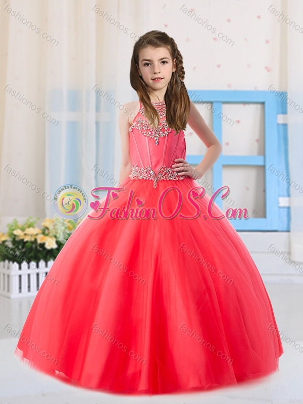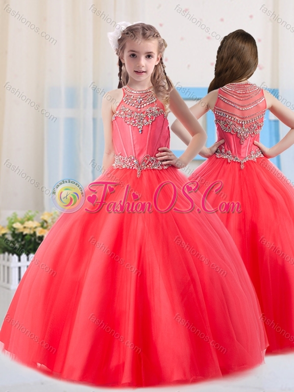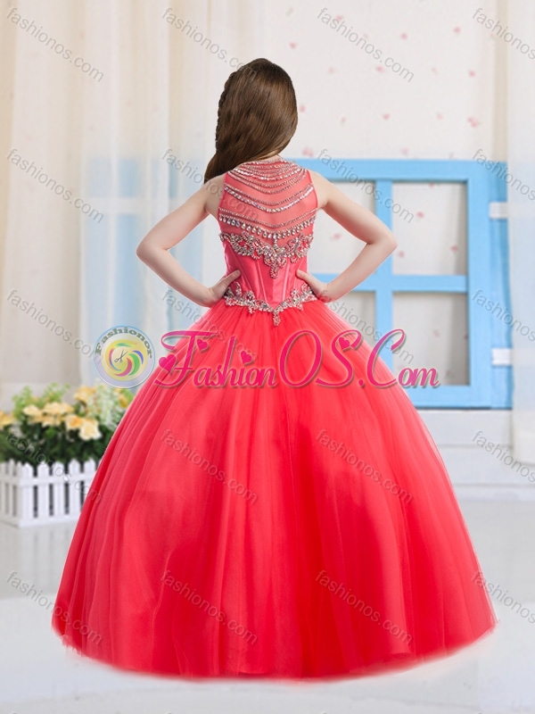 Home >  Special Occasion Dresses >  Mini Quinceanera Dresses > Beautiful Ball Gowns Scoop Tulle Coral Red Mini Quinceanera Dress with Beading