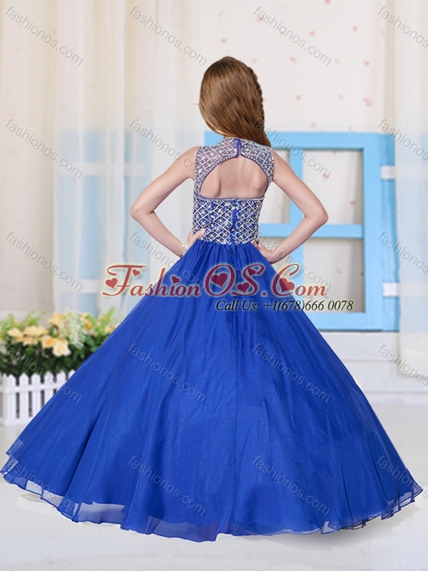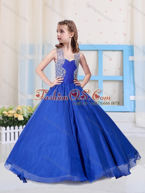 Beautiful Ball Gowns Straps Blue Little Girl Pageant Dress with Beading